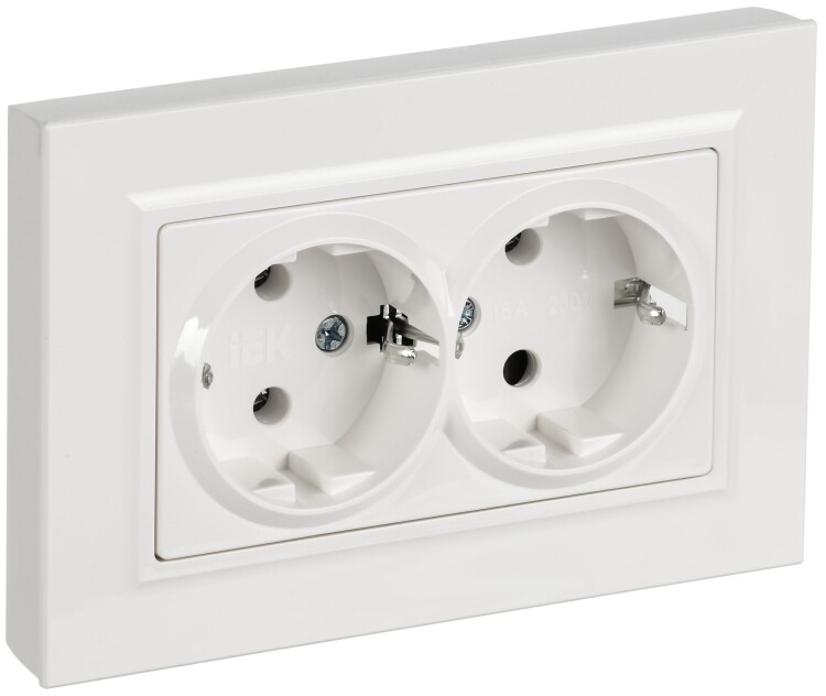 BRITE Розетка 2-местная с заземлением без защитных шторок плоская 16А в сборе РСПл12-3-БрБ белый IEK