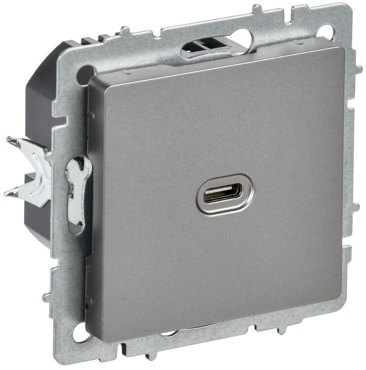 BRITE Розетка USB C 65Вт высокоскоростная зарядка РЮ12-1-БрС сталь IEK