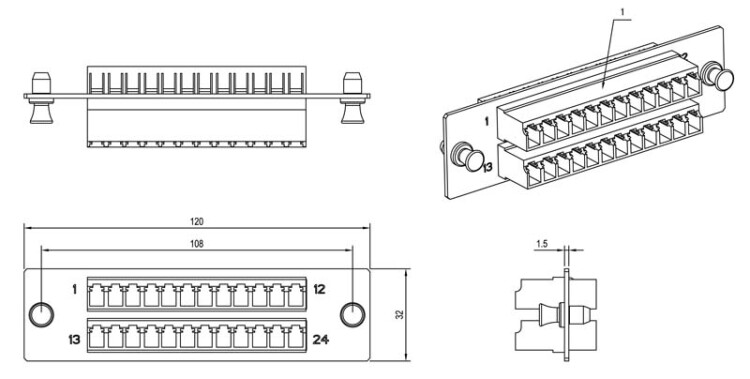 Hyperline FO-FPM-W120H32-24LC-BL Панель для FO-19BX с 24 LC адаптерами, 24 волокна, одномод OS1/OS2, 120x32 мм, адаптеры цвета синий (blue) Крепление прижимными винтами удобно при реконфигурации системы Доступны различные типы оптических адаптеров (LC, SC, FC, ST) Высокая плотность портов и многократное использование Минимальные потери в соединениях