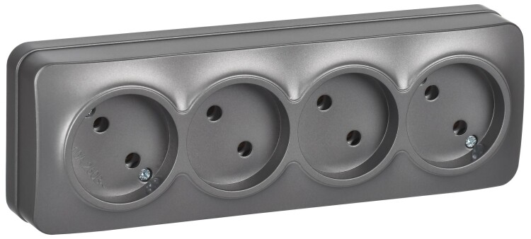 GLORY Розетка 4-местная для открытой установки без заземления без защитных шторок 10А РС24-2-ХСм ста