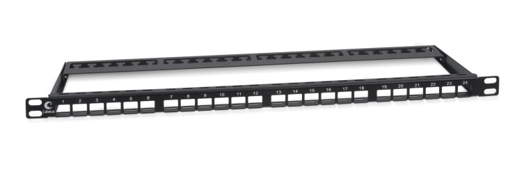 Коммутационные панели (патч-панели) предназначены для терминирования на них кабелей различных подсистем СКС и для коммутации отдельных элементов сети друг с другом при помощи коммутационных шнуров. Модульная патч-панель Cabeus выполнена в 19” формате и предназначена для установки в телекоммуникационные шкафы и стойки. Имеет высоту 0,5U Используется для установки 24 неэкранированных модулей типа Keystone. Модульные патч-панели обеспечивают максимальную гибкость при эксплуатации сетей, позволяя легко и быстро переконфигурировать систему соединений под индивидуальные потребности. С лицевой стороны все порты пронумерованы. Патч-панель имеет съемный задний организатор для фиксации кабелей.
