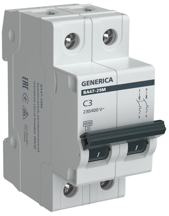 Автоматический выключатель ВА47-29М 2P 3А 4,5кА C GENERICA