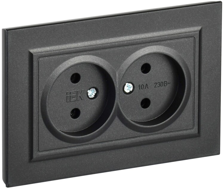 BRITE Розетка 2-местная без заземления без защитных шторок 10А в сборе РС12-2-БрЧ черный IEK