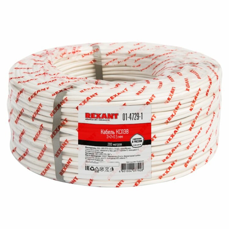 Кабель сигнальный КСПЭВ 2x2х0,5 мм, бухта 200м, REXANT, 01-4729-1