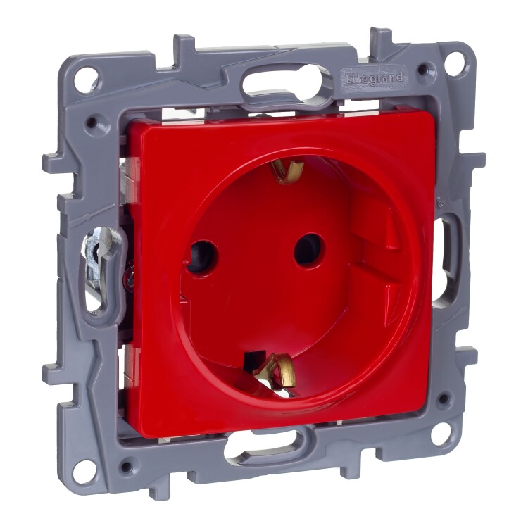 ETIKA Розетка 1-местная с заземлением с защитными шторками 16А красный