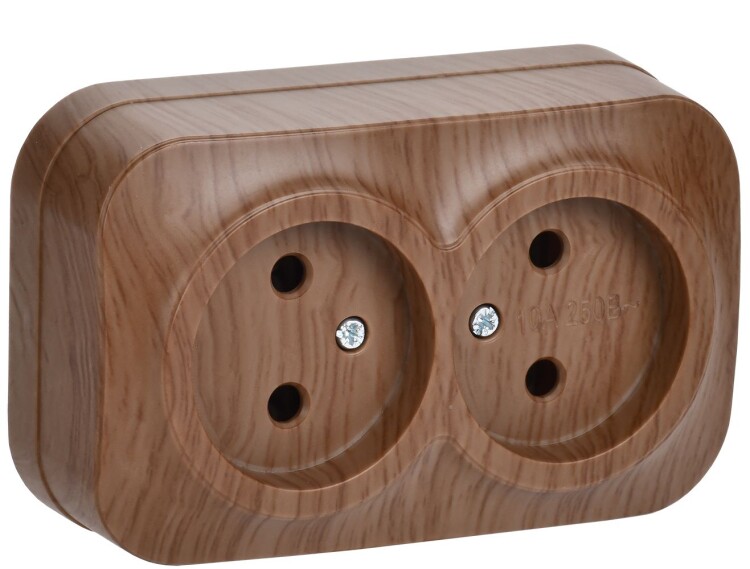 GLORY Розетка 2-местная для открытой установки без заземления без защитных шторок 10А РС22-2-ХД дуб