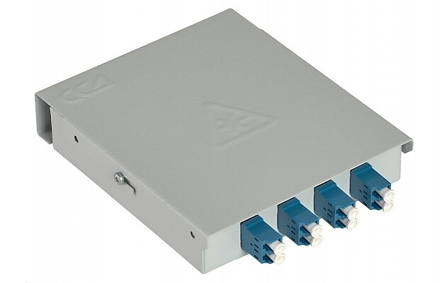 Предназначен для использования в качестве абонентской розетки для подключения компьютеров в локальных сетях офисных и жилых помещений. Имеет небольшие габариты и может устанавливаться на стенах в непосредственной близости от рабочих мест. Корпус кросса изготовлен из металла толщиной 1 мм и покрыт порошковой краской цвета RAL7035. Легкосъёмная крышка фиксируется двумя винтами с боков корпуса. Оптические кабели разделываются и фиксируются в верхней части корпуса. Волокна свариваются с пигтейлами, КДЗС закрепляются в ложементе. Адаптеры устанавливаются в отверстиях в нижней части корпуса.