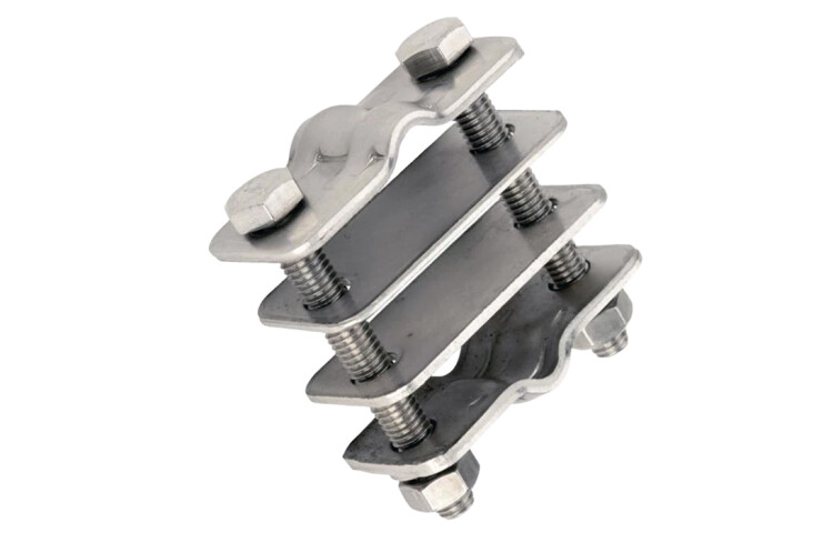 Зажим ZZ-202-001 позволяет подсоединить проволочный токоотвод диаметром 8 мм к молниеприёмнику стержневому ZZ-201-004. Зажимы ZZ-202-001 позволяют фиксировать два проводника (с разных сторон). Изготовлен из нержавеющей стали. Болты, шайбы и гайки выполнены из нержавеющей стали.
