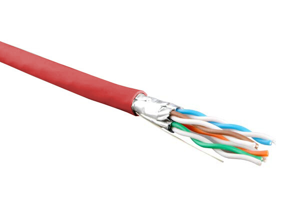 Hyperline UFTP4-C6-S23-IN-LSZH-RD-500 (500 м) Кабель витая пара, экранир. U/FTP, без общего экрана, каждая пара в фольге, категория 6, 4 пары 23 AWG, 4х2х0,55 мм, однопров.жилы, LSZH, нг(А)-HF, внутр.-40°C – +75°C, красный, системная гарантия 25 лет.