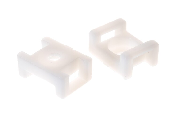 Электромонтажные работы по проведению проводки не обходятся без площадки для крепления стяжки. Она позволяет с помощью всего одного винта или самореза прикрепить пучки проводов, стянутые хомутом, к абсолютно любой поверхности. Тем самым произвести как временную, так и постоянную организацию кабельной проводки. Плюс к этому, площадку для крепления стяжки используют также и для закрепления иных нетяжёлых предметов. Выполнена площадка из пластика белого цвета и оснащена специальным отверстием под хомут.
