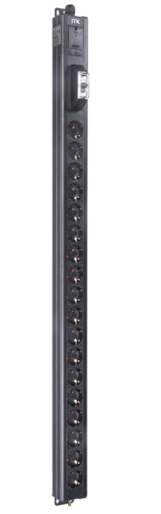 Вертикальный однотипный блок распределения питания PDU ITK включает в себя 13 розеток Schuko. PDU ITK изготавливается из высококачественных термостойких материалов и пластмасс, оснащается 2,6 метровым кабелем электропитания с вилкой Schuko. PDU ITK прекрасно справляется с задачей по электроснабжению сетевого оборудования в шкафах и стойках, а также с требованием защиты от токов короткого замыкания и перенапряжения. PDU ITK соответствует российским и международным стандартам качества и устанавливается с помощью кронштейнов, при этом положение кронштейнов можно менять, либо безынструментальным методом при помощи монтажных штифтов.