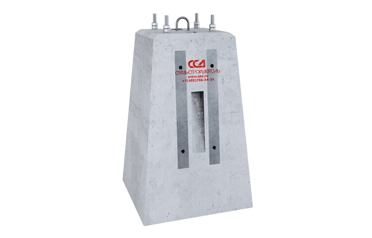 Предназначен для установки оптических сигнальных устройств мачтового типа с наклонной лестницей и двумя трансформаторными ящиками на железнодорожном транспорте и городских дорогах. Представляет собой железобетонный блок с двумя закладными устройствами (квадратными трубами) и закладными элементами для крепления складной лестницы. Болты на которые накручена гайка, выступают над поверхностью блока на 100 мм. Шайбы и гайки в комплекте с фундаментом не поставляются, для приобретения комплекта укажите номенклатурный номер 110504-00042. Наклонная лестница и трансформаторные ящики в комплекте с фундаментом не поставляются. Фундамент для светофора применяется для установки оптических сигнальных устройств в ветровых районах I-IV категорий, преимущественно в стандартных эксплуатационных условиях, без экстремальных нагрузок. Фундамент светофора рассчитан на многолетнюю службу и является надежным фиксатором для установленного на нем оборудования. Монтаж устройств напольного оборудования должен производится в соот