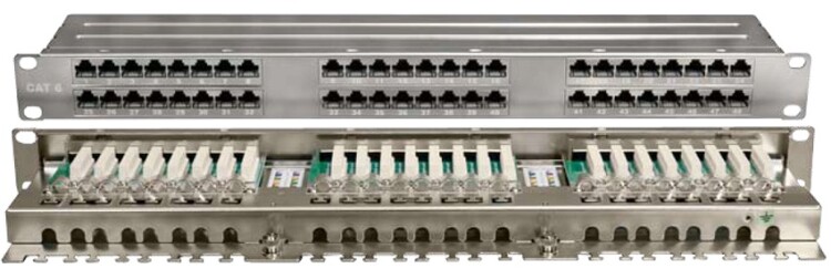 Цифровая маркировка Нумерация портов на лицевой панели. Цифровая маркировка Цветовая маркировка на задней панели в соответствии с T568B и T568A. Удобство заделки Высокая выступающая часть корпуса IDC-модуля обеспечивает удобство заделки проводников. Для заделки кабеля подходят два типа инструментов: 110 типа и для плинтов (LSA). Кабельный организатор Встроенный задний кабельный организатор для укладки кабелей. Комплектация Съемная экранирующая крышка, шина и кабель заземления. Используется для коммутации одножильных кабелей калибра 22–24 AWG (0,64–0,51 мм) Компактная конструкция идеальна для ЦОД и соединений высокой плотности Экранированный корпус защищает от воздействия помех и наводок.