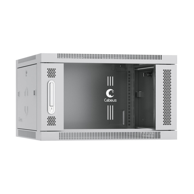Отличным решением для организации ЛВС небольшой емкости являются настенные шкафы Cabeus. Имея современный дизайн, шкафы предназначены для установки и использования внутри помещений. В стандартной конфигурации шкаф оборудован: задней стенкой, передними и задними монтажными профилями и двумя кабельным вводами сверху и снизу. Легкий доступ к установленному оборудованию организован за счет съемных боковых панелей. В шкафу великолепно продумана естественная (пассивная) вентиляция, за счет перфорации в корпусе шкафа и на передней дверце. А так же, конструктивно, предусмотрена установка активной вентиляции. Четыре 19" монтажных L - профиля, имеют юнитовую (U) разметку в соответствии со стандартом DIN 41494-7, глубина установки направляющих может изменяться в зависимости от устанавливаемого оборудования.