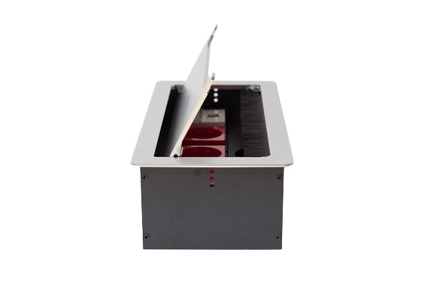 Организация рабочих мест в помещениях с открытым пространством. Предназначен для монтажа в рабочий стол. Особенности: Металлический корпус не имеет нижнего основания Наличие направляющих для изменения положения планки с суппортами по высоте Вывод кабеля осуществляется через полосовую щетку, установленную на крышке лючка Размеры: Верхняя панель: 265 х 130 мм Металлический корпус: 252 х 114 х 75 мм Комплект (в сборе) состоит из: Верхняя панель Металлический корпус, Планка с суппортами на 4 поста Элементы крепления к столешнице Заземляющий провод Нет в комплекте: Электроустановочные изделия