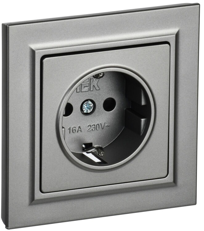 BRITE Розетка 1-местная с заземлением с защитными шторками 16А в сборе РСР14-1-0-БрС сталь IEK