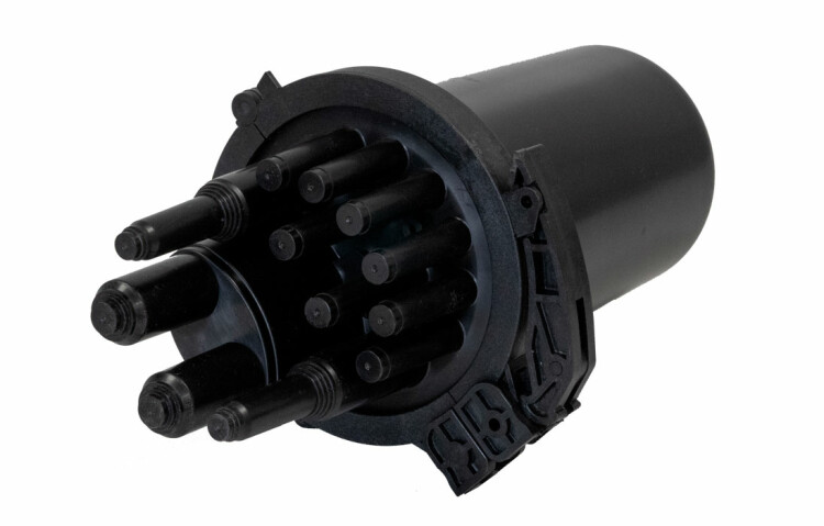 Предназначена для монтажа оптических кабелей (ОК), прокладываемых (подвешиваемых) на открытом воздухе, в кабельной канализации и внутри технических помещений (чердаках, подвалах). В том числе может применяться при строительстве сетей FTTH/PON. Выполнена из пластмассы и имеет пыле-брызгозащищенную тупиковую конструкцию- ввод ОК и дроп-кабелей производится с одной стороны. Корпус герметизируется уплотнительной прокладкой на стыке кожуха с оголовником. Фиксация кожуха и оголовника осуществляется пластмассовым хомутом с рычажным замком. Герметизация вводимых ОК и дроп-кабелей осуществляется термоусаживаемыми трубками. Особенностью муфты является наличие большого числа патрубков для ввода дроп-кабелей, которые герметизируются ТУТ, что позволяет размещать муфту как на опорах, так и в колодцах кабельной канализации.