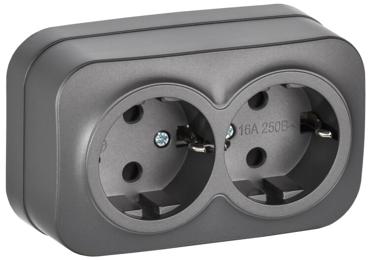 GLORY Розетка 2-местная для открытой установки с заземлением без защитных шторок 16А РС22-3-ХСм стал