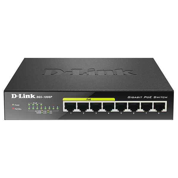 Коммутатор D-Link DGS-1008P с 8 портами 10/100/1000Base-T (4 порта поддерживают Power over Ethernet (PoE)) предназначен для домашних пользователей, а также малого бизнеса, и позволяет подключать и подавать питание по Ethernet-кабелям на такие устройства, как PoE-совместимые беспроводные точки доступа, сетевые камеры или IP-телефоны. Данный коммутатор оснащен пассивной системой охлаждения, которая обеспечивает бесшумную работу устройства, что позволяет поместить его практически в любой комнате или офисе.