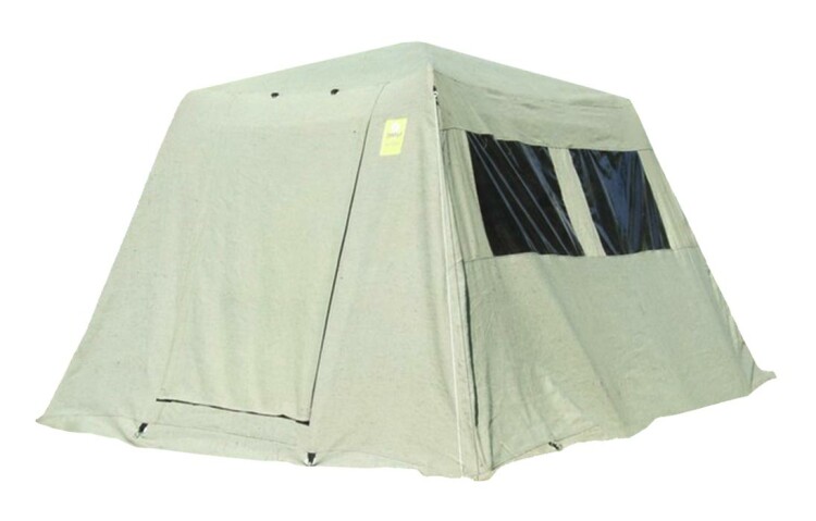 Палатка изготовлена из брезента пропитанного огнеупорным составом, имеет вход с двух сторон и четыре окна, собирается на металлическом каркасе, предназначена для монтажных и ремонтно-восстановительных работ.