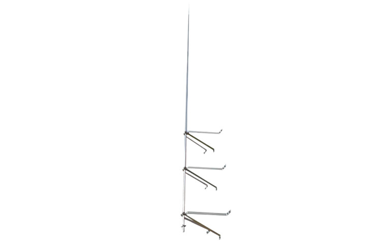 Традиционный стержневой молниеприёмник ZANDZ в виде заостренной мачты высотой 10 метров. Устанавливается при помощи специальных креплений на вертикальные поверхности. Крепления выполнены из нержавеющей стали и входят в комплект поставки. При монтаже крепления размещаются на стене с шагом 1 метр. Токоотводы в виде проволоки диаметром 8 мм подключаются к молниеприёмнику с помощью специального зажима ZZ-202-002. Мачта изготовлена из нержавеющей стали в виде трубы с толщиной стенки 2 мм.