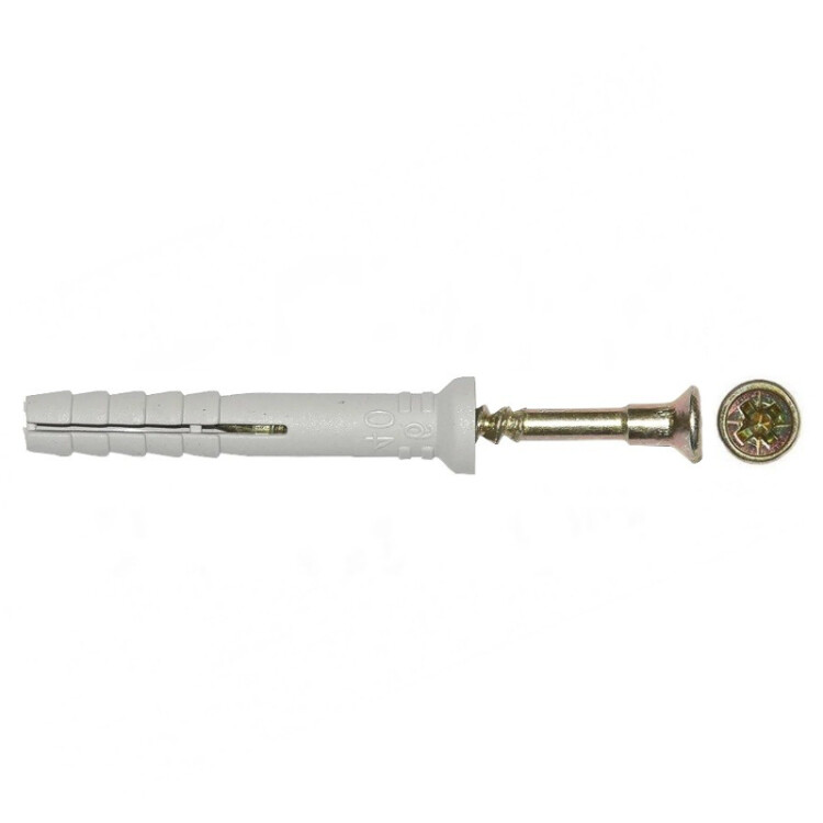 Предназначен для быстрого монтажа. Главное преимущество такого крепления: установка ударным способом (молотком), что значительно экономит время, обеспечивая быстрый серийный монтаж. Основные преимущества дюбель-гвоздей KRANZ: - Бортик на шляпке гвоздя предохраняет шлицы от сбивания при забивании. - Усиление гвоздя под шляпкой плотно фиксирует гвоздь в дюбеле, предохраняя его от излома.