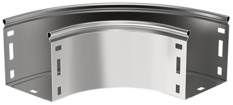 Поворот на 90° плавный предназначен для организации горизонтального поворота кабельной трассы на 90°. Крышка аксессуара в комплект не входит. Аксессуар изготовлен из стали горячего цинкования методом Сендзимира (защитный слой цинка не менее 10 мкм).