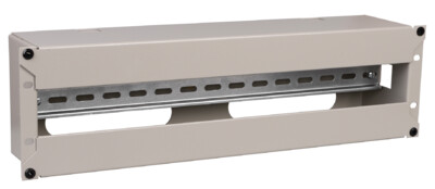 Электрораспределительная панель с DIN-рейкой используется для установки в 19" шкафах и стойках модульного оборудования и подведения к ним электрических кабелей с последующим распределением рабочего напряжения на потребителей. Максимально возможное количество модулей 18 мм (1P), устанавливаемых в панель - 21 шт. Панель имеет высоту 3U, состоит из корпуса, лицевой съемной крышки и непосредственно DIN-рейки. На обратной стороне предусмотрены окна для ввода кабелей в панель. Электрораспределительная панель устанавливается на вертикальные монтажные профили с помощью крепежа винт-шайба-гайка. На корпусе предусмотрена возможность организации заземления изделия.