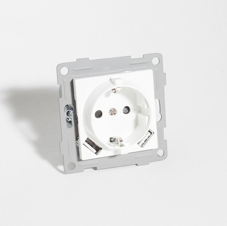 Розетка электрическая 2К+З/2xUSB A, 125-250V (белый) предназначена для подключения к электросети различных бытовых электроприборов, а также для питания/зарядки устройств оснащённых соответствующими разъёмами. Применяется для скрытого монтажа в стены в подрозетник или накладную монтажную коробку глубиной не менее 40мм. Универсальный монтаж: на винтах в стандартный подрозетник или использование фиксирующих лапок. В комплект входит суппорт для монтажа на захватах (распорных лапках) или винтах, выполненный из прочного сплава и лицевая накладка из качественного ABS-пластика, устойчивого к царапинам и УФ-излучению.