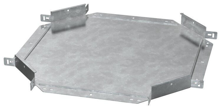 Крестовина предназначен для организации X-образного разветвления кабельной трассы в горизонтальной плоскости. Стыковка аксессуара с лотком осуществляется за счёт телескопического соединителя. Подходит для всех типов листовых лотков серии ESCA. Крышка на аксессуар заказывается отдельно. Аксессуар изготовлен из стали оцинкованной методом горячего погружения (защитный слой цинка не менее 55 мкм).