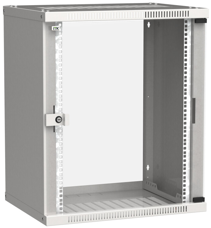 Шкаф настенный 19", 15U, 600х450мм, стекл. дверь, серый, LINEA WE, ITK LWE3-15U64-GF