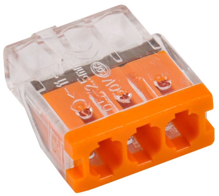 Строительно-монтажная клемма серии 772 в прозрачном корпусе, без контактной пасты, предназначена для однократного подключения одножильных/ многожильных медных проводников.