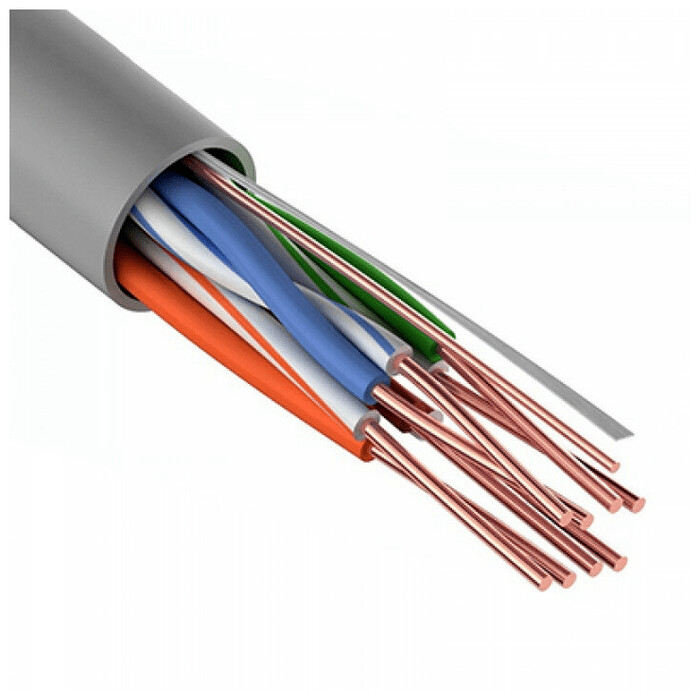 Кабель UTP 4PR 24AWG, CCA, CAT5e (бухта 305 м) PROconnect LIGHT. Неэкранированная витая пара, материал проводника алюминий плакированный медью CCA, калибр (24 AWG). Материал оболочки — ПВХ (PVC). Область применения кабеля: - Структурированные Кабельные Системы (СКС). - Центр обработки данных (ЦОД). - Локальные сети общего назначения. - Домашние сети. - Сети малого бизнеса. - Компьютерные сети. - Сети передачи данных. - Телефония. - Цифровое телевидение. - Системы видеонаблюдения (IP-камеры). - Системы охраны и контроля доступа. - Узкоспециализированные сети (торговое оборудование, складские сети, производственные сети с использованием нестандартного периферийного оборудования, такого как станки, вариаторы, типографские машины). Кабель витая пара соединяет и передает сигнал между компьютерами, компьютерами и сервером.