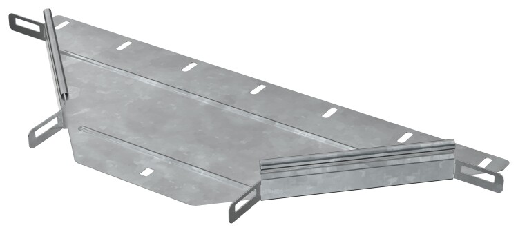 Отвод Т-образный горизонтальный предназначен для организации Т-образного или X-образного отвода кабельной трассы в горизонтальной плоскости. Стыковка аксессуара с лотком осуществляется за счёт телескопического соединителя. Подходит для всех типов листовых лотков серии ESCA. Крышка на аксессуар заказывается отдельно. Аксессуар изготовлен из стали оцинкованной методом горячего погружения (защитный слой цинка не менее 55 мкм).