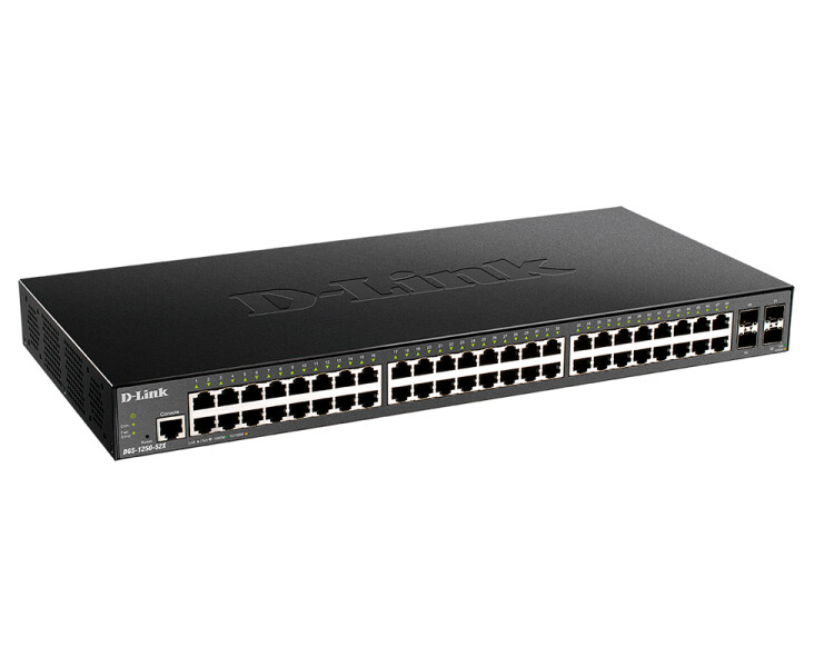 Управляемый коммутатор DGS-1250-52X, оснащенный 48 портами 10/100/1000Base-T и 4 портами 10GBase-X SFP+, поддерживает технологию D-Link Green и расширенные функции управления и безопасности, обеспечивая высокую производительность и масштабирование сети. Функции управления включают SNMP, управление на основе Web-интерфейса и интерфейс командной строки (CLI).