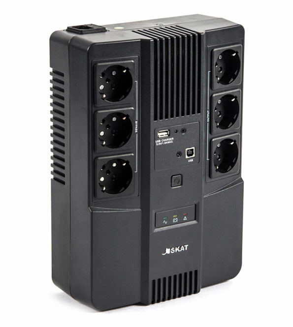 220 В, 800 ВА, (480 Вт), встроенный АКБ 9 Ач, холодный старт, световая и звуковая индикация режимов работы, связь и управление ПК по USB. Встроенный стабилизатор (диапазон сети — 170...270 В), защита от всплесков напряжения, защита от перегрузки. 6 выходных разъема: 3 шт. CEE 7/4 (розетка с заземлением) с питанием от АКБ, 3 шт. CEE 7/4 (розетка с заземлением) без питания от АКБ.