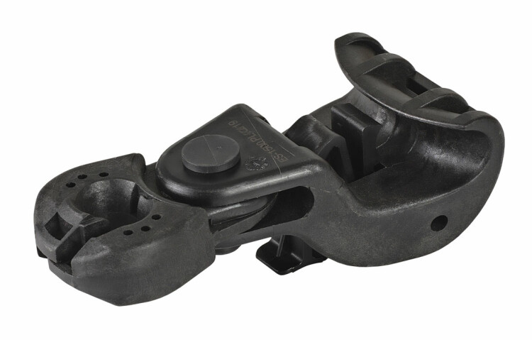 Применяется для крепления провода марки СИП на промежуточных опорах. Отличительная особенность это шарнирное разьемное кольцо подвеса. Возможно применение на угловых опорах при углах до 30°. Провод подвешивается за нулевую жилу, и фиксируется специальной защелкой. Элементы зажима, контактирующие с несущей нулевой жилой, изготовлены из диэлектрического материала и выполняют роль изолятора, а также защищают изоляцию жилы от механического повреждения. Благодаря наличию шарнироного соединения. зажим обеспечивает достаточную степень свободы СИП.