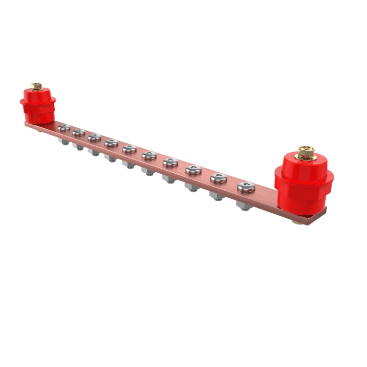 Главная шина заземления медная 3x25 мм, 10 подключений, 250 мм, ток 340 А (CBG-ГЗШ-3.25-10). Элемент системы заземления, который обеспечивает необходимое уравнивание потенциалов в системах электроснабжения TN-S и TN-C-S. ГЗШ должна быть изготовлена из электротехнической меди. Алюминиевые шины применять нельзя. Главную Заземляющую Шину монтируют в легко доступном и удобном для обслуживания месте.