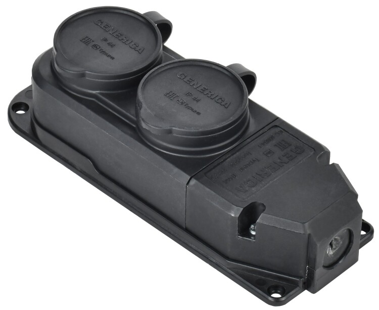 Розетка (колодка) двухместная с защитной крышкой 16А IP44 каучук черная GENERICA