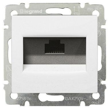Розетка телефонная RJ11 VALENA для скрытого монтажа. Служит для быстрого подключения к сетям телекоммуникаций (например, к телефонным сетям общего пользования.