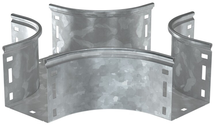 Крестовина плавная предназначена для организации X-образного ответвления кабельной трассы. Крышка аксессуара в комплект не входит. Аксессуар изготовлен из стали с цинковым покрытием, нанесенным погружением изделий в расплав цинка (защитный слой цинка не менее 55 мкм).