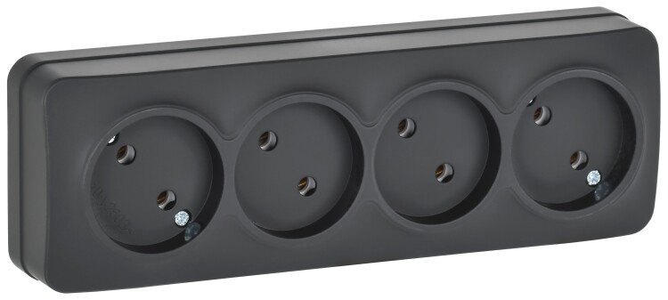 GLORY Розетка 4-местная для открытой установки без заземления без защитных шторок 10А РС24-2-ХЧм чер