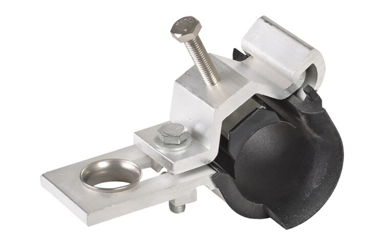 Предназначен для подвески самонесущего изолированного провода на промежуточных и угловых опорах при углах поворота до 30°. Кронштейн состоит из двух алюминиевых профилей, соединенных болтовым соединением, образующий замкнутый контур, препятствующий выскальзыванию провода в случае ослабления затяжки. Зажатие провода осуществляется прижимом.