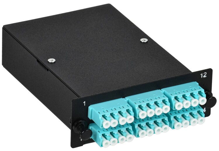 Предназначен для установки в кросс высокой плотности FBPS-00-1U. Применяется для организации соединений высокой плотности с применением разъёмов типа MPO. Конструктивно представляет из себя стальную кассету с адаптерами типа LC quadro на лицевой планке и розетками типа MPO/MTP на тыльной стороне. Внутри модуля установлена "гидра" MPO(MTP)-12LC. Таким образом кабельные сборки с разъёмами типа MPO (MTP) подключаются с тыльной стороны панели, а патч-корды с разъёмами типа LC с лицевой стороны панели.