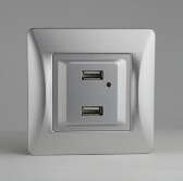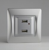 Розетка USB, 2-местная, тип А, серебристая, SPL 201036
