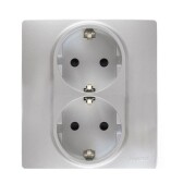 ETIKA Розетка 2-местная с заземлением без защитных шторок 16А в сборе алюминий