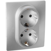 INSPIRIA Розетка 2-местная с заземлением без защитных шторок 16А в сборе алюминий