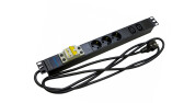 Блок розеток 19", 1U, 6 гнёзд (Schuko), 16A, с LED выключателем, черный, кабель 2,5м, DANNMAN 7000300