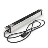 Блок розеток 19", 1U, 8 гнёзд, вход C14, 10А, с LED выключателем, алюминий, без кабеля, DANNMAN 7190060