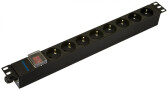 Блок розеток 19", 1U, 8 гнёзд (Schuko), вход С14, 10А, с LED выключателем, черный, без кабеля, DANNMAN 7000400